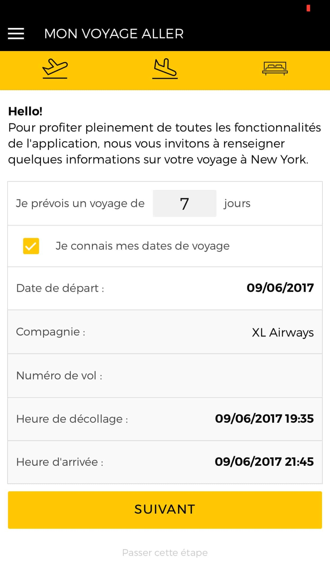 Renseignez et retrouvez la durée de votre voyage, vos dates de séjour, vos horaires de vol, votre compagnie aérienne et les coordonnées de votre hôtel dans un seul et même endroit.